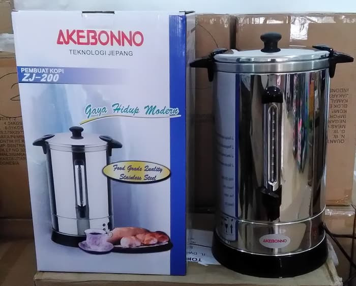 Pemanas kopi atau teh dengan body stainless steel, kapasitas 20 liter serta dilengkapi dengan mode penghangat otomatis (air akan dipanaskan sampai mendidih dan secara otomatis akan berpindah ke mode penghangat). Terdapat lampu indikator untuk mode pemanas dan mode penghangat, saringan stainless steel dan indikator tinggi air untuk memudahkan pengguna mengetahui kapasitas kopi atau teh yang tersisa.