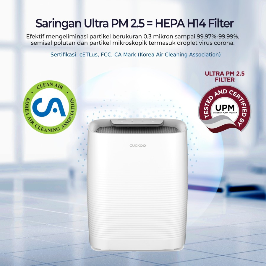 Pre Filter, Penghilang Bau, 4 in 1 HEPA Ultra PM 2.5. Menghilangkan hingga 99,95% partikel debu di udara.