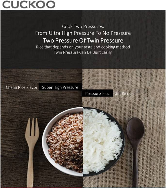 TWIN PRESSURE : Tekanan Ultra Tinggi dan Tanpa Tekanan. Rice Cooker Dengan TWIN PRESSURE Cocok Untuk Berbagai Gaya Hidup Modern Ini Akan Memberi Anda Rasa Yang Disesuaikan.