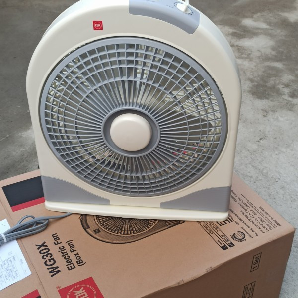 KDK WG-30X – Box Fan 12 inch berfungsi menyejukan ruangan dengan baling-baling berukuran 30cm dengan pengaturan 3 kecepatan dan suara halus serta motor dilengkapi dengan thermal fuse.