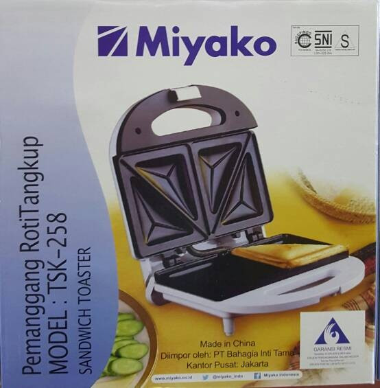 Miyako TSK258 – Sandwich Toaster dengan balutan warna putih yang cantik, dan daya listrik sebesar 450 watt. TSK258 siap membantu Anda melengkapi kebutuhan Anda dalam menyiapkan keperluan sarapan