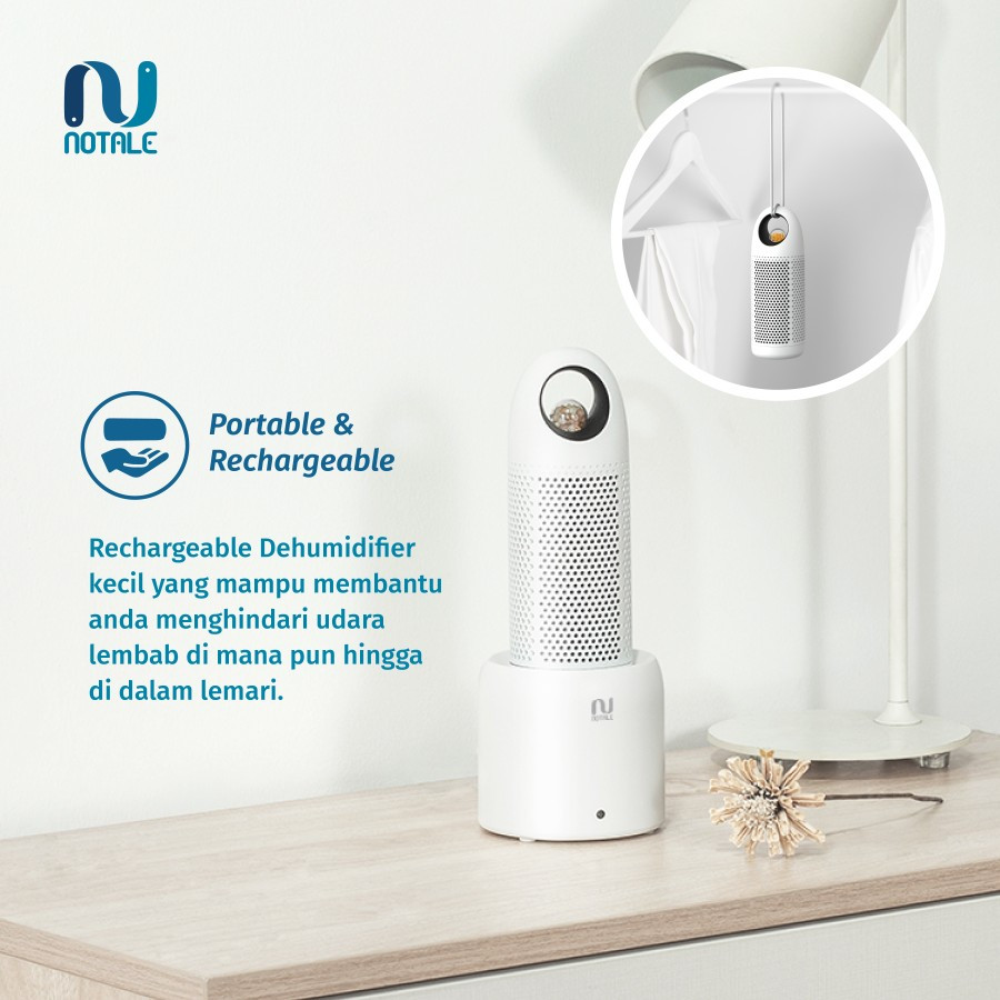 3. Dapat digunakan sampai dengan 1 minggu dalam 1x charger dengan coverage area 5m2. Notale Portable Dehumidifier dapat di pakai berulang kali sampai dengan 300x pemakaian