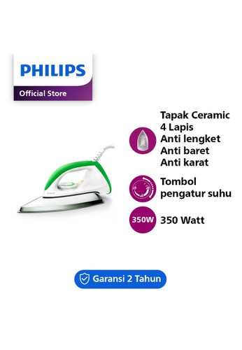Philips HD1173/70 – Setrika 350 Watt Green merupakan setrika terbaru dari Philips adalah setrika listrik yang fungsional sehingga Anda dapat dengan mudah menyetrika pakaian dengan cepat dan hemat waktu. Dengan alas yang terbuat keramik dan anti lengket, kegiatan menyetrika akan lebih mudah dan aman. Bagian bawah setrika didesain sedemikian rupa sehingga dapat menjangkau sisi baju yang sulit dijangkau sekalipun.