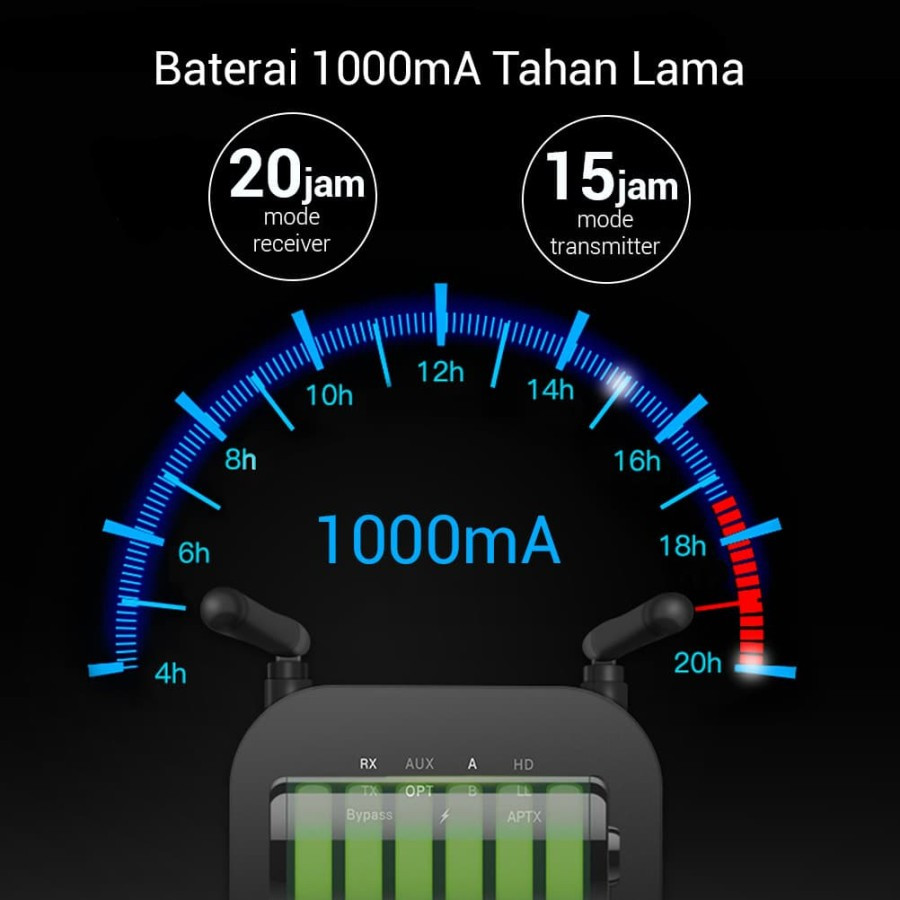 Perangkat ini mendukung 2 output sekaligus. Dengan teknologi aptX Low Latency, perangkat ini mendukung penundaan audio minimal sehingga memudahkan Anda untuk bermain game dengan suara lebih real.