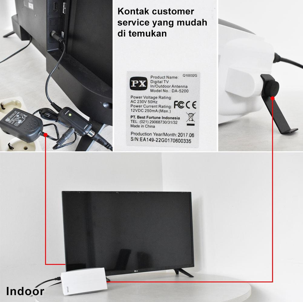 Px Digital TV Indoor/Outdoor Antena – DA5200 Antena indoor mensupport untuk semua jenis TV (TV lama/biasa, LCD, LED). Pemasangan mudah dengan desain yang simple. Praktis & mudah dalam penggunaannya.