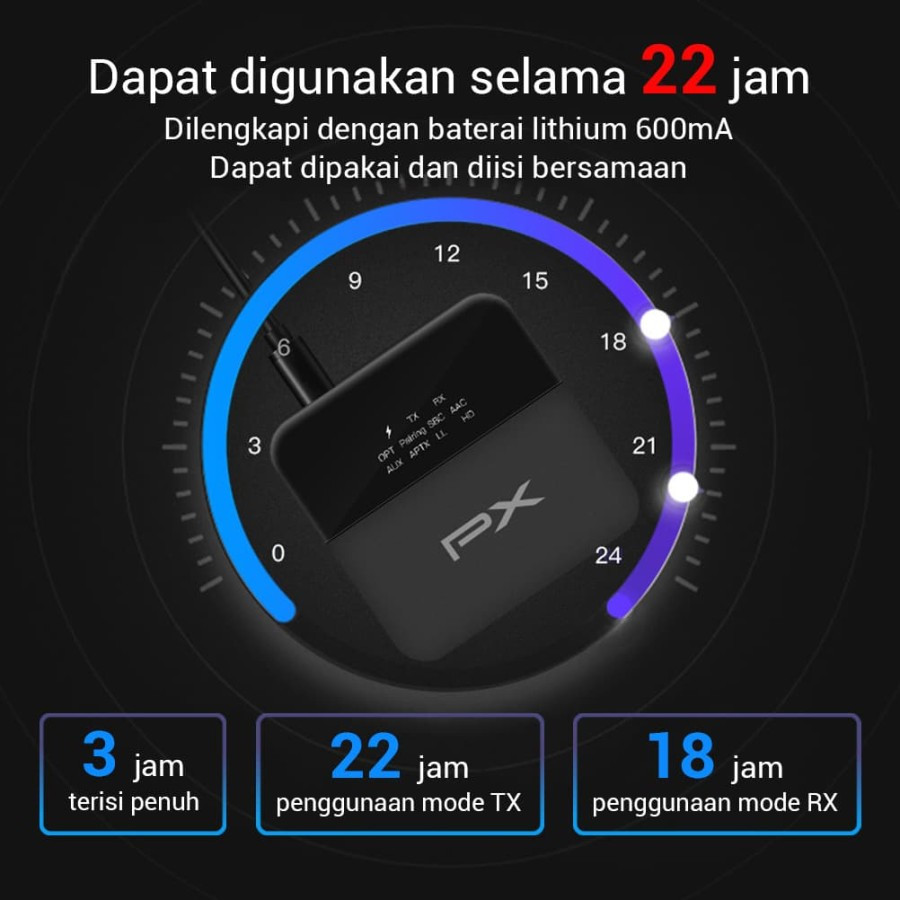 Durasi penggunaan: RX﹥18 jam TX﹥22 jam