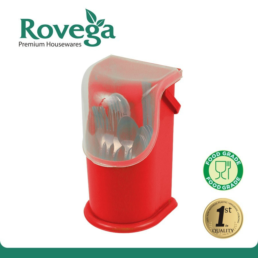 Rovega Cutlery Holder New Spoony CHS-2020 merupakan tempat untuk menyimpan sendok dan garpu berbahan plastik yang didesain sederhana dan praktis, sehingga dapat diletakkan di dapur atau pada meja makan. Tempat ini dirancang mudah dibersihkan dan dilengkapi dengan tutup rapat untuk menjaga kebersihan peralatan makan yang disimpan di dalamnya.