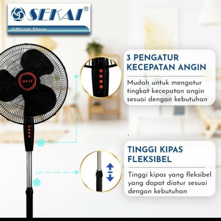 Sekai SFN1620 – Stand Fan 16 inch Kaki Silang 45 Watt kipas angin industri dengan osilasi penuh yang menghasilkan angin lebih merata ke seluruh sisi. Putaran angin tidak berisik dan sudah dilindungi oleh thermofuse. Sehingga, resiko panas berlebih dapat diminimalisir.