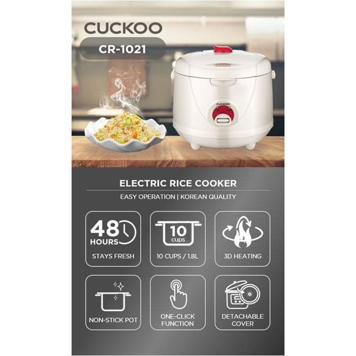 CR-1021 membantu menghemat waktu di dapur sehingga Anda bisa lebih banyak menghabiskan waktu bersama keluarga. CR-1021 dengan berbagai fungsi memasak, antara lain untuk menanak nasi, pemanas biasa, juga bisa masak sup, merebus sayur. Sangat nyaman. Kandungan nutrisi dalam bulir beras tidak akan hilang, sehingga dapat menjamin kesehatan dan keselamatan keluarga Anda.